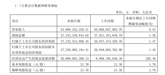 其中,茅台酒实现营收460.05亿元,同比增长5.62%,压舱石作用持续彰显;茅台酱香系列酒营收78.81亿元,同比增长12.22%,增长态势持续向好。